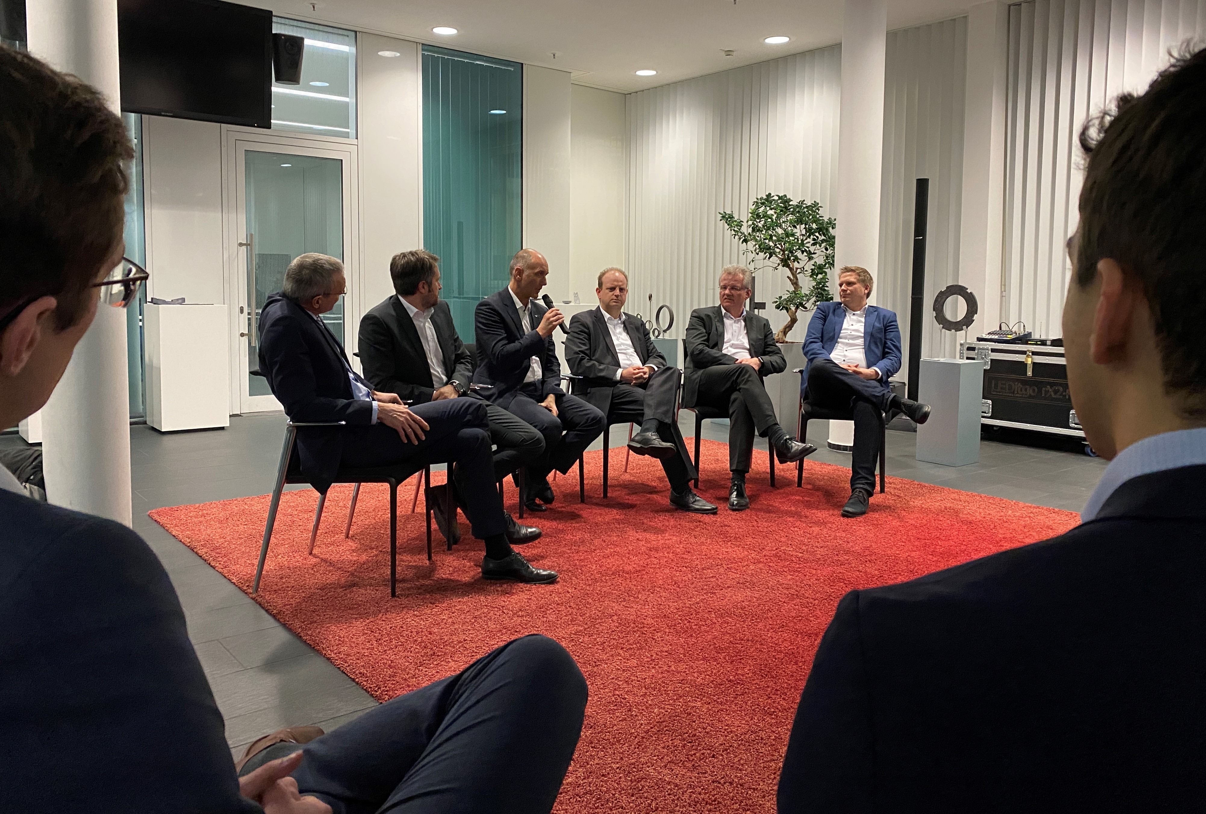 Neben den 14 Teilnehmern des Trainee Programms nahmen geladene Gäste aus der Industrie an der Veranstaltung teil, darunter Dr. Lars Herbeck (VOITH Composites), Ulrich Amersdorffer (Premium AEROTEC), Gottfried Hornung (Airbus Helicopters), Dr. Andreas Erber (SGL), Alexander Gundling (Composites United) und Dr. Philipp Schäfer (DIEHL Aviation). Durch den Abend führte Dr. Tilo Hauke von SGL. Nach Impulsreferaten und einer spannenden Podiumsdiskussion mit speziellem Fokus auf zukünftigen Entwicklungen in der Luftfahrtbranche nutzten die Studenten intensiv die Gelegenheit mit den geladenen Gästen ins Gespräch zu kommen.