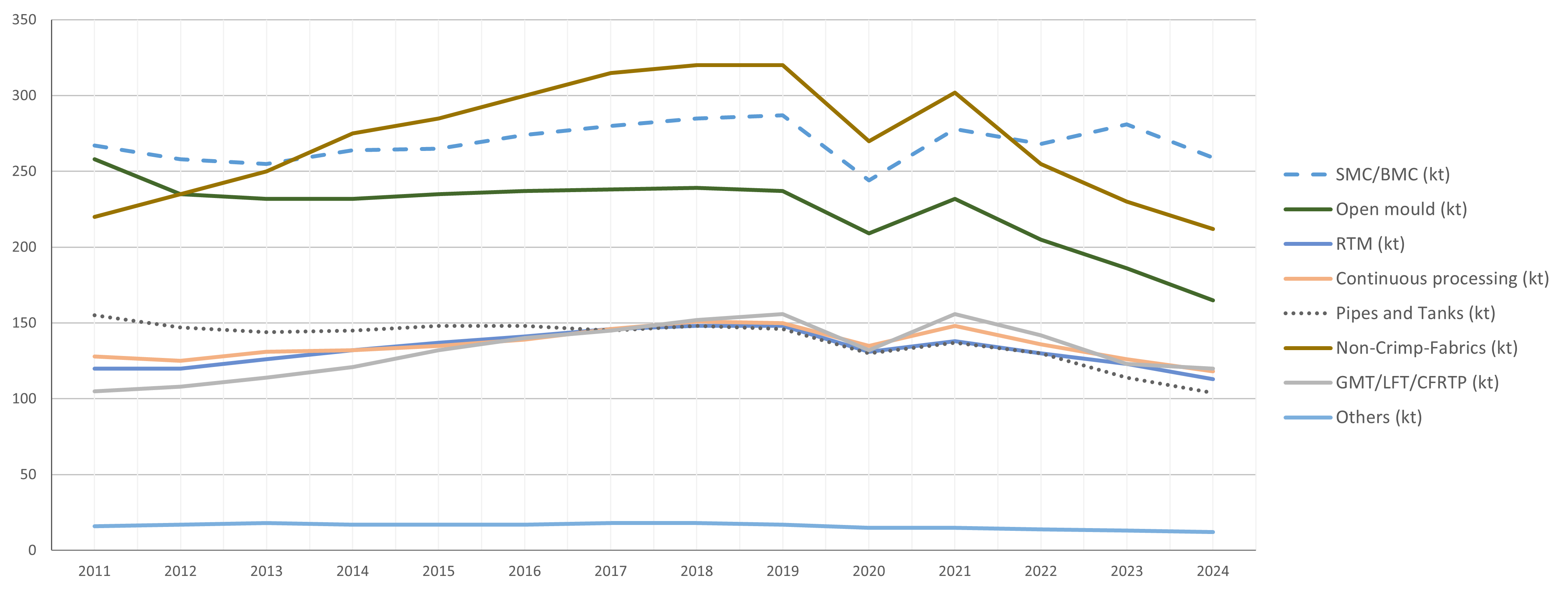 Der europäische Composites-Markt 2024 – Marktentwicklungen, Trends, Herausforderungen und Ausblicke Composites-Markt setzt Abwärtstrend fort Die Europäische Composites-Industrie konnte auch 2024 den Abwärtstrend nicht stoppen. Bereits im