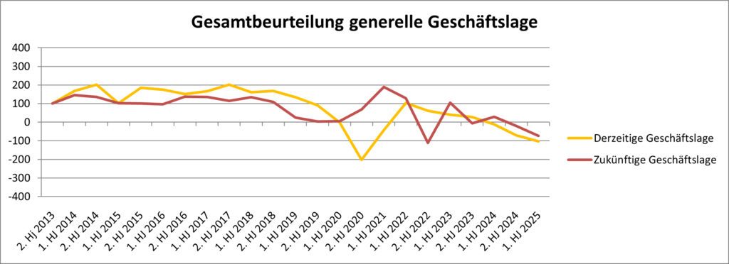 Auch in der aktuellen Erhebung konnte keine Aufhellung der Stimmung im Hinblick auf die generelle Geschäftslage wahrgenommen werden.