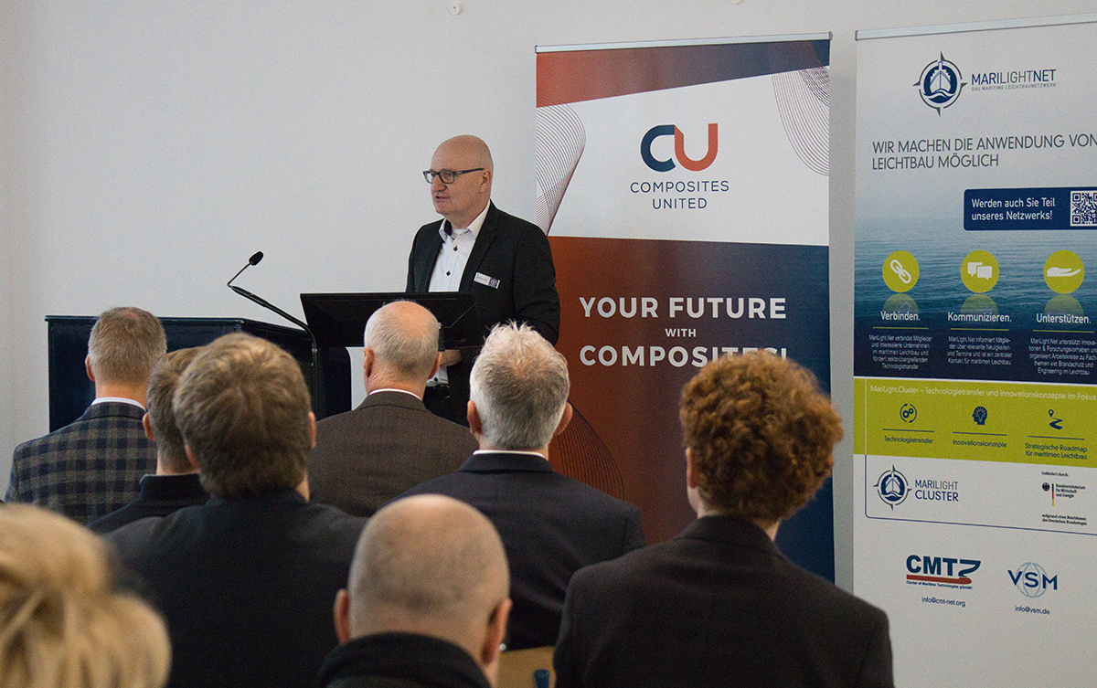 Die Firma ar engineers stellte die Plattform calcbond vor, welche die einfache Auslegung von Klebverbindungen ermöglicht. Fassmer zeigte an einem aktuell gebauten Schiff konkrete Leichtbaupotenziale auf. Das Deutsche Zentrum für Luft- und Raumfahrt (DLR) informierte über neue Entwicklungen beim Thema Brandschutz. Die Vorträge von InfraCore Company und der ThermHex Waben GmbH widmeten sich der Sandwich-Technologie – InfraCore stellte schadenstolerante Sandwich-Strukturen für den Schiffbau vor, ThermHex präsentierte Sandwichplatten für Anwendungen im Transportwesen. Ihre Erfahrungen und Lösungen für den Einsatz von Composites in einer anderen Branche teilte die CG Rail GmbH. Ein wichtiger Einblick für die Gäste, denn Composite-Anwendungen in Schienenfahrzeugen sehen sich mit ähnlichen Herausforderungen konfrontiert wie im maritimen Sektor.