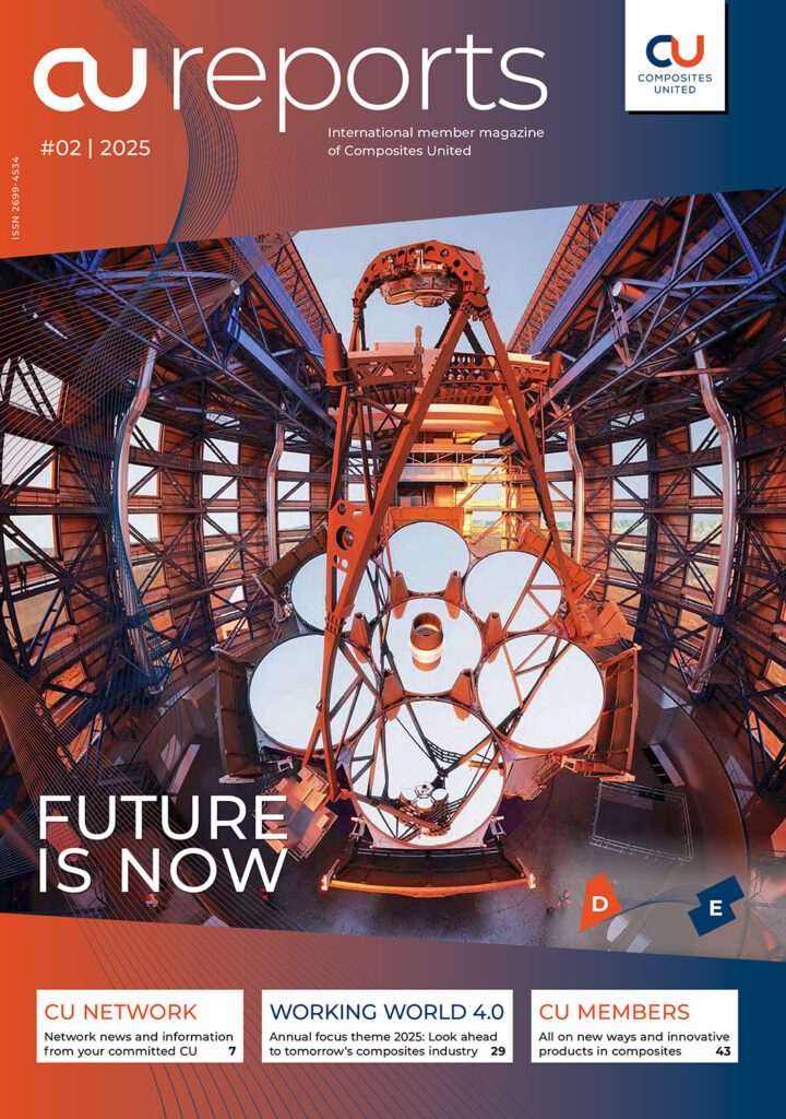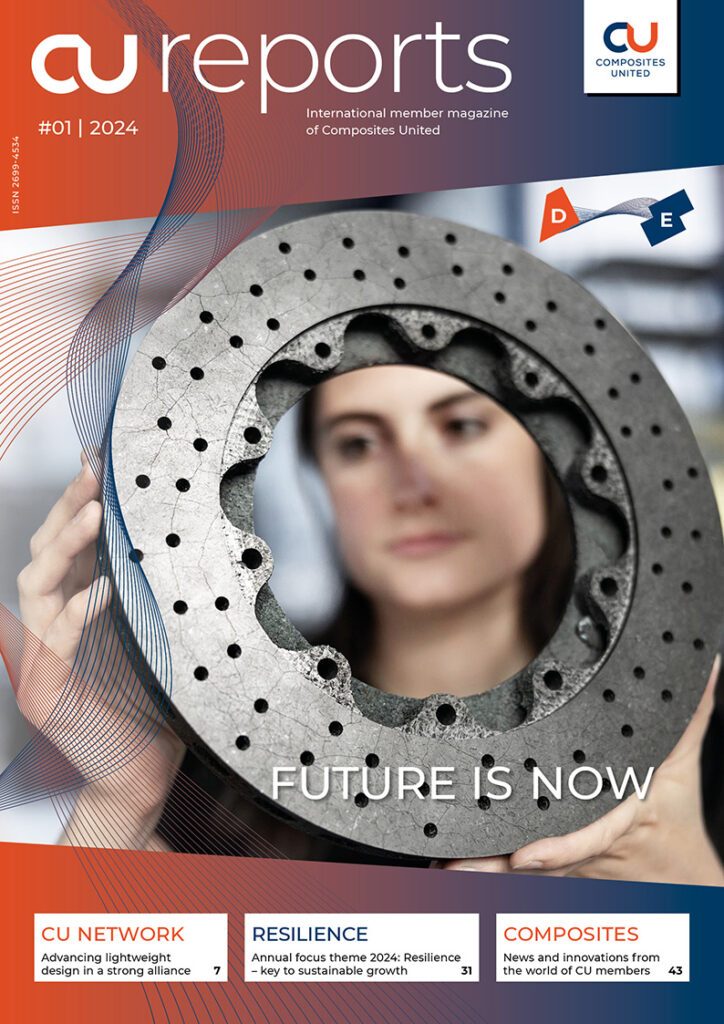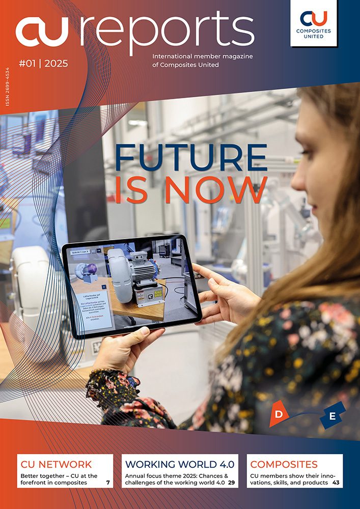 CU reports – das ist unser Mitgliedermagazin: Voll mit aktuellen Themen und Trends, ein wahres Schaufenster der modernen Faserverbund- und Leichtbau-Branche. Kein Wunder, denn die Fachbeiträge stammen durchweg von CU-Mitgliedern. Das macht den CU reports zu einer wertvollen Informationsquelle für Leserinnen und Leser aus Politik, Wissenschaft und Wirtschaft, darunter insbesondere die Anwender und Entscheider der rund 350 Mitglieder des Composites United. Der CU reports erscheint zweimal jährlich in Deutsch und Englisch, gedruckt und online.