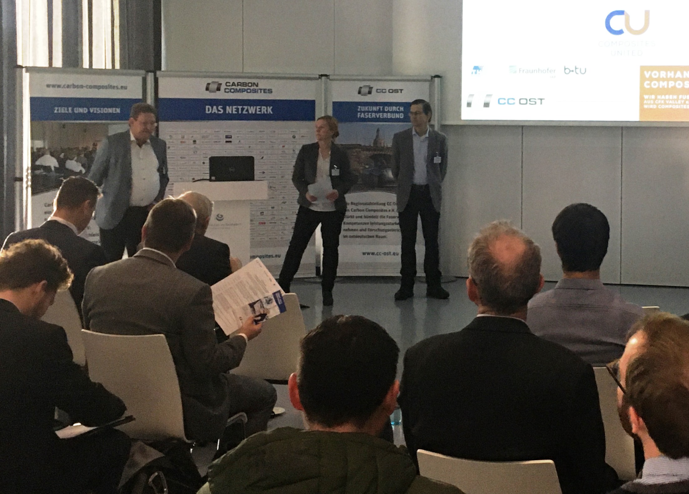 „Polymerbasierter Leichtbau“ war CU-Thementag am 14. November 2019 überschrieben. Dazu hatten sich mehr als 50 Teilnehmerinnen und Teilnehmer am Zentrum für Luft- und Raumfahrt Schönefelder Kreuz in Wildau eingefunden. Initiatoren der Veranstaltung waren das Fraunhofer Institut für Angewandte Polymerforschung (IAP) PYCO, die Brandenburgische Technische Universität (BTU) Cottbus-Senftenberg, die TH Wildau und das Kompetenzzentrum für energie- und ressourceneffizienten Leichtbau in der Region Brandenburg. Unter dem Arbeitstitel „Vom Monomer bis zum Hochleistungsbauteil“ hatten die beiden CU-Arbeitsgruppen „Faser-Matrix-Haftung“ und „Matrices“ unter Leitung von Dr. Christina Scheffler und Prof. Michael Heine für diesen Thementag ein abwechslungsreiches Programm die Beine gestellt.