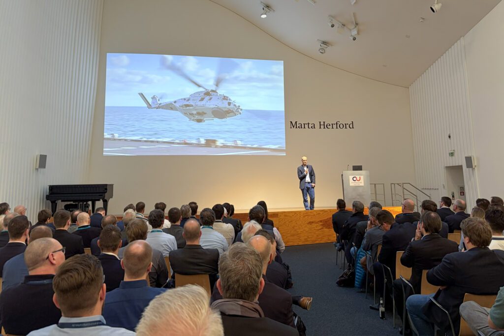 Kai Steinbach (Hightex Verstärkungsstrukturen GmbH) demonstrierte anhand des Mehrzweckhubschraubers NH90, wie optimale Fasernutzung die maximale Zuladung verbessert. Ein Thema, das besonders die anwesenden Einsatzplanerinnen und -planer fesselte.