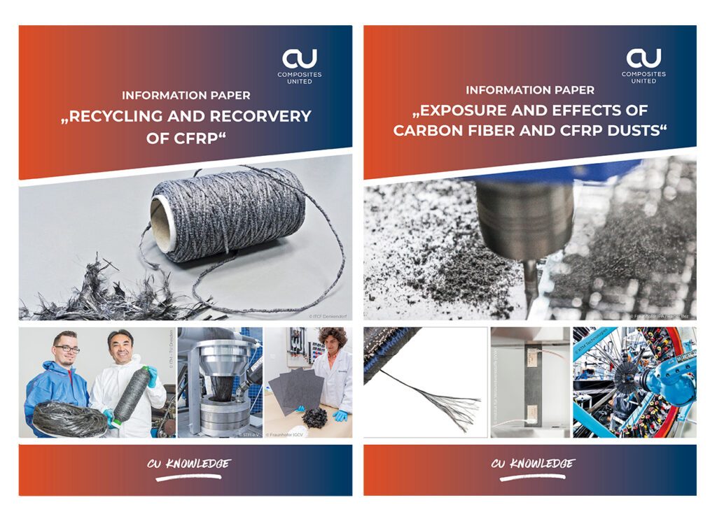 As of now, the CU is offering a new service for its members. Factually neutral, scientifically supported summaries on relevant topics are now available in the form of information papers that present the current state of knowledge on the respective topic. These papers from the “CU KNOWLEDGE” series are available exclusively to CU members. The information papers are sent out on request. The documents “Recycling and recovery of CFRP” and “Exposure and effects of carbon fiber and CFRP dusts” are now available; more topics are to come.