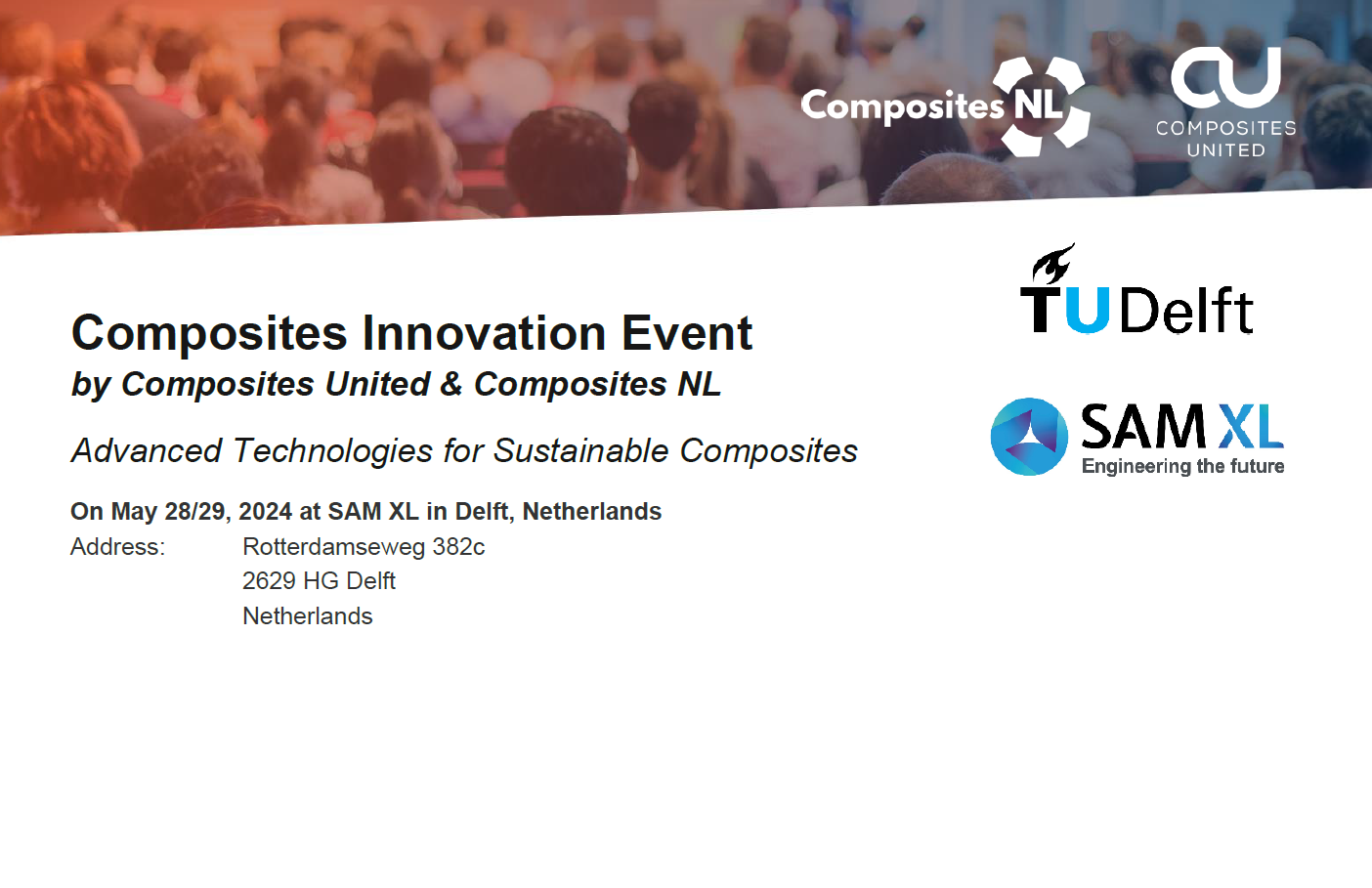 Join us in Delft on May 28th and 29th 2024 for a unique event on the latest insides in advanced technologies for sustainable composites. The German and Dutch Composites Industry join forces during a two-day event were advanced technologies and innovations in different industries from both countries will be presented. In addition, you can look forward to a nice evening diner event as well as interesting company tours in the vicinity of Delft on day 2.