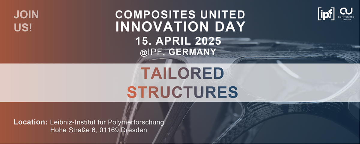The CU Innovation Day “Tailored Structures” focuses on the lightweight design of fiber-reinforced composites with minimal material usage. The aim of the symposium is to promote the use of variable-axial composites with their highly anisotropic properties in relation to the latest advances in the design, manufacture and application of ultra-lightweight structures. In collaboration with international partners from academia, and industry, the fifth edition of the symposium will be held at the Leibniz Institute for Polymer Research Dresden, Germany. The exchange of experts in this field will provide the basis for the sustainable and resource-efficient development of future composite concepts.