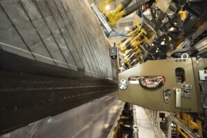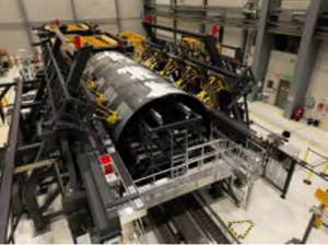 As part of the EU-funded Clean Sky 2/Clean Aviation project “Large Passenger Aircraft” (“LPA”), the Fraunhofer-Gesellschaft in Stade, Germany, together with international project partners, has joined together a true-to-scale upper and lower shell of the “Multi Functional Fuselage Demonstrator” (“MFFD”) using automated positioning and joining processes. The welding of the two longitudinal seams of the two 8-meter-long CFRP half-shells, which have a diameter of around 4 meters, successfully completed the production of the world’s largest thermoplastic CFRP aircraft fuselage segment (Figure 1).