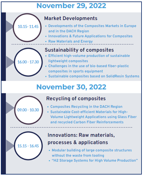 - Innovation highlights: The prestigious AVK Awards will highlight the latest innovations of the year and the JEC Composites Startup Booster competition will honor the best startups in the DACH region.