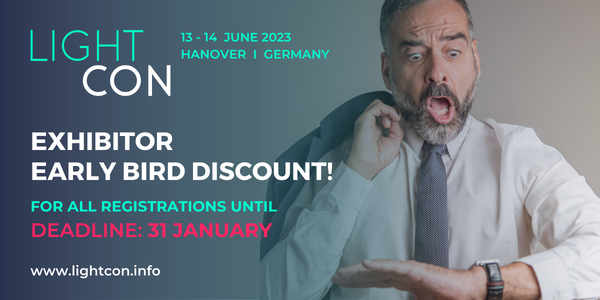 Until January 31, 2023 we are offering attractive participation prices for exhibitors as part of the “Early Bird” rate. Convince yourself of the LightCon concept and book your stand at discounted rates.