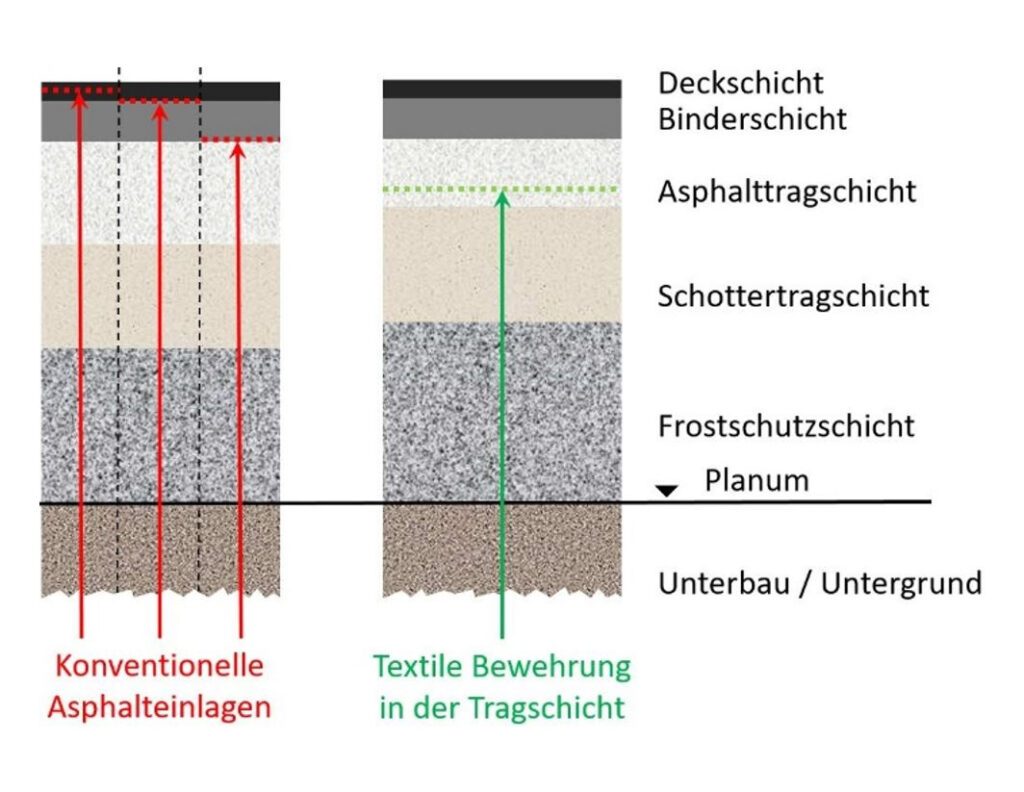 Am Institut für Textilmaschinen und Textile Hochleistungswerkstofftechnik (ITM) der TU Dresden wurden profilierte Carbonbewehrungen entwickelt mit bis zu 500 % höheren Betonverbundeigenschaften als Carbonfilamentgarne ohne Profilierung. Gemeinsam mit dem Institut für Stadtbauwesen und Straßenbau (ISS) will das ITM diese Materialien auch für den effizienten Einsatz in Asphalttragschichten nutzbar machen.