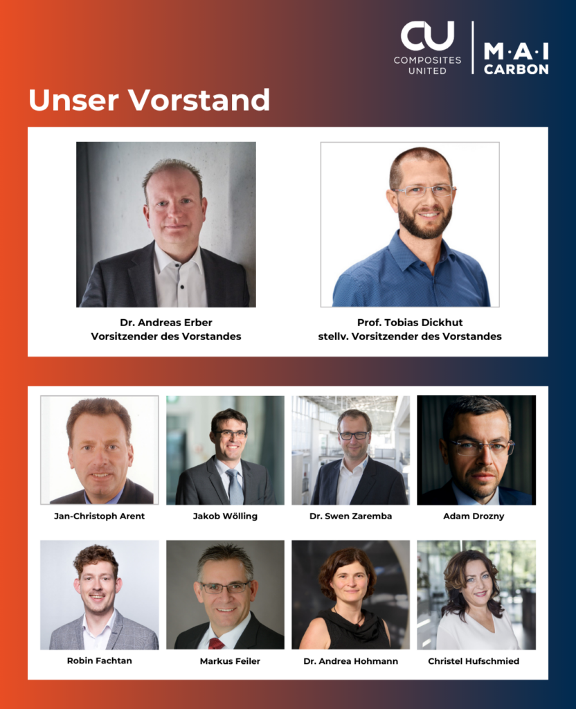 Der komplettierte Vorstand bringt eine breite Palette an Kompetenzen aus verschiedenen Sektoren der Faserverbundwerkstoff-Industrie mit, beispielweise aus den Bereichen Forschung und Entwicklung, Zerspanung, Luftfahrt oder Faserherstellung. Mit der neu gewählten Vorstandschaft wird nun das Bild eines multidisziplinären und hochqualifizierten Teams, das bereit ist, MAI Carbon in eine innovative Zukunft zu führen, vervollständigt.