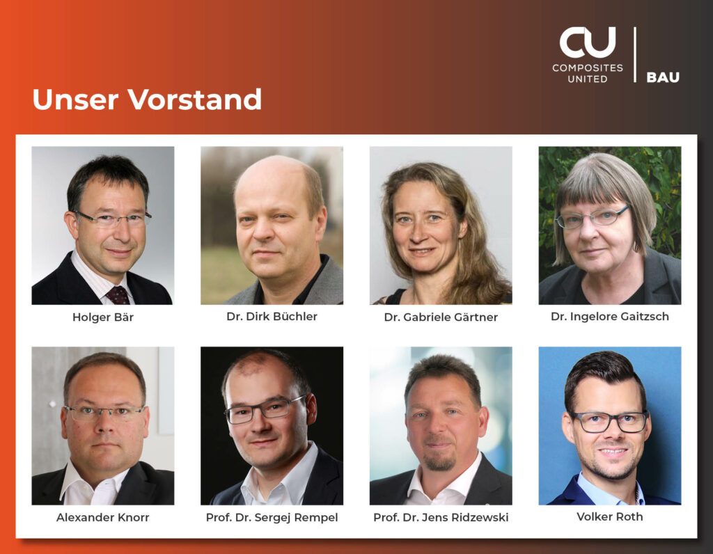 Aufgrund der aktuellen Herausforderungen hinsichtlich Ressourcenverfügbarkeit sowie dem 1,5-Grad-Ziel ist es unabdingbar, neue Materialien und Materialkombinationen für eine nachhaltige Baubranche einzusetzen. Der Ausbau von nationalen und internationalen strategischen Partnerschaften mit etablierten Unternehmen, Forschungs- und Weiterbildungseinrichtungen im Interesse der CU-Mitglieder hat weiterhin eine hohe Priorität. Diese Vernetzung sowie die Bündelung von Know-how ist die Voraussetzung dafür, dass Bauprodukte mit faserverstärkter Beton- oder Polymermatrix von der Baubranche zukünftig vertrauensvoll und materialgerecht eingesetzt werden.