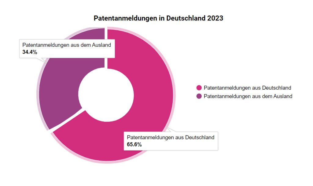 Die Zahl der Patentanmeldungen in Deutschland ist im Jahr 2023 erstmals wieder gestiegen. Waren es im Jahr 2019 noch 67.905 Anmeldungen, sank die Zahl 2022 auf 57.214 Anmeldungen. Im Jahr 2023 stieg die Anzahl der nationalen deutschen Patentanmeldungen wieder leicht auf 58.656. Über die Hälfte davon (38.469 Patentanmeldungen) stammen aus Deutschland.