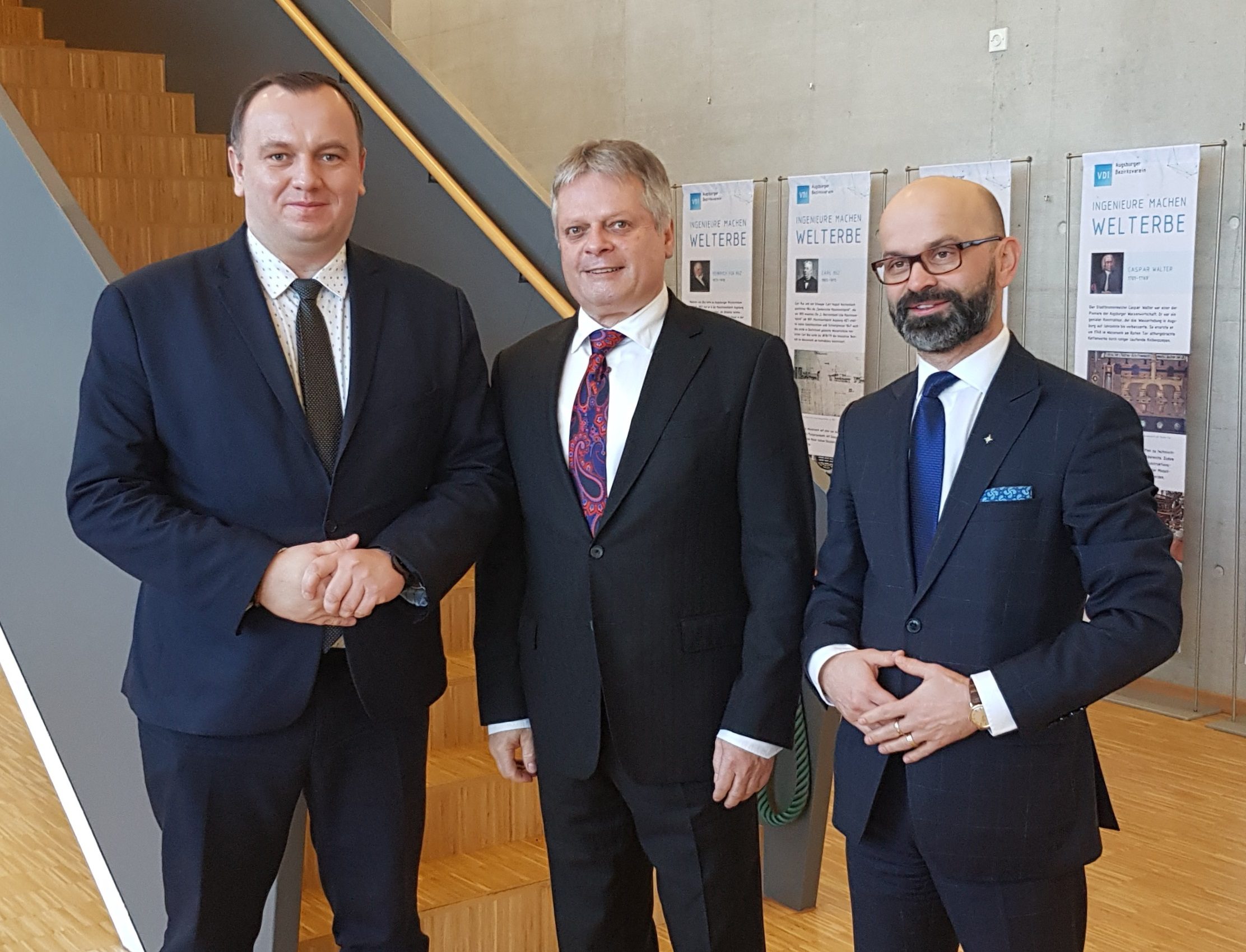 Bildunterschrift: Ziehen industriepolitisch an einem Strang: Marschall Jakub Chełstowski, Prof. Dr. Hubert Jäger, CU, und Janusz Michatek, Präsident der Sonderwirtschaftszone Kattowitz (v.l.n.r.) © CU