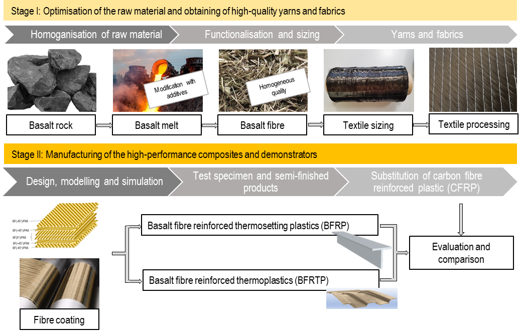 Bleiben Sie über die aktuellen Forschungsarbeiten an modifizierten Basaltfasern für Hochleistungscomposite informiert und nutzen Sie die Vernetzung mit nationalen und internationalen Partnern.