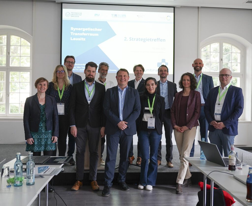 Parallel zum Symposium fand das zweite Strategietreffen des Projektes syntral – Synergetischer Transferraum Lausitz – statt, bei dem das Cluster CU Ost als Projektpartner beteiligt ist. Dieses vom Bundesministerium für Bildung und Wirtschaft (BMBF) im Rahmen der T!Raum-Initiative geförderte Vorhaben zielt darauf ab, in den kommenden neun Jahren nachhaltige Transferstrukturen und Leichtbauanwendungen in der Lausitz zu etablieren.