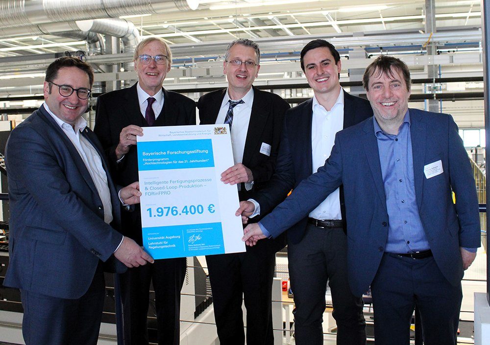 Grundlegende Konzepte zur prozessspezifischen Sensorik- und Zustandsüberwachung sowie zur datenbasierten Modellierung, Regelung und Optimierung von Fertigungsprozessen erforscht in den kommenden drei Jahren der bayerische Forschungsverbund „Intelligente Fertigungsprozesse & Closed-Loop-Produktion – FORinFPRO“. Die Bayerische Forschungsstiftung fördert das Projekt mit rund zwei Millionen Euro. Tobias Gotthardt, Staatssekretär für Wirtschaft, Landesentwicklung und Energie, übergab heute den Förderbescheid. FORinFPRO ist ein gemeinsames Vorhaben der Universität Augsburg sowie zehn weiterer Partner aus Industrie und Forschung.