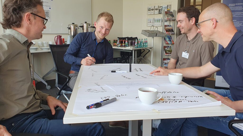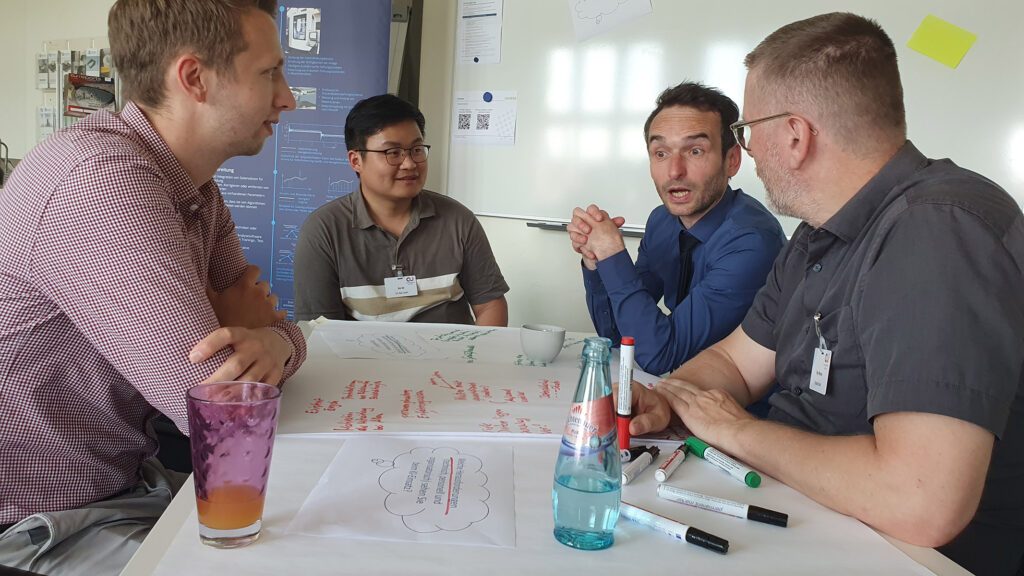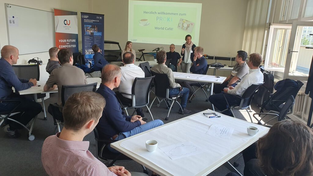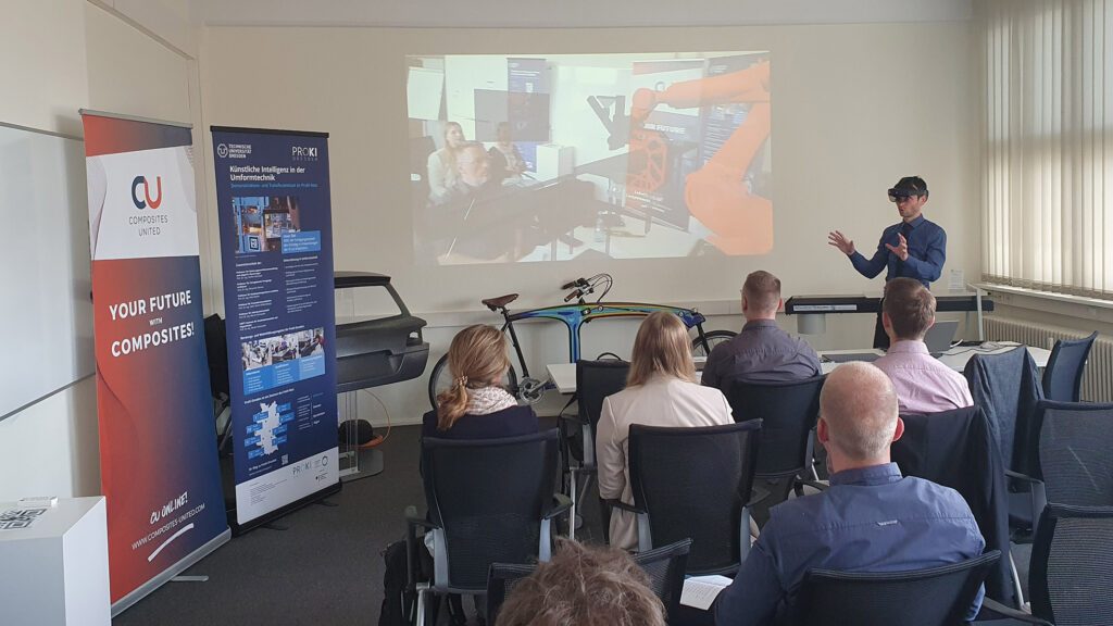 Abgerundet wurde die Veranstaltung mit einer „Live-Vorführung von AR-Anwendungen für Produktionsanlagen“ von Dr. Daniel Weck, ILK der TU Dresden, sowie einem „World Café zu Transferanforderungen an ProKI-Dresden“ durch Solveig Hausmann, ProKI-Dresden, und einem Rundgang über den Leichtbau-Campus Dresden. Der lebhafte Austausch hat gezeigt, dass die KI-Nutzung in der Produktion erst ganz am Anfang und alle Beteiligten vor einer Reihe an unbeantworteten Fragen stehen. Es bleibt also spannend und wir freuen uns auf einen weiterführenden Austausch im Rahmen der nächsten Arbeitsgruppensitzungen.