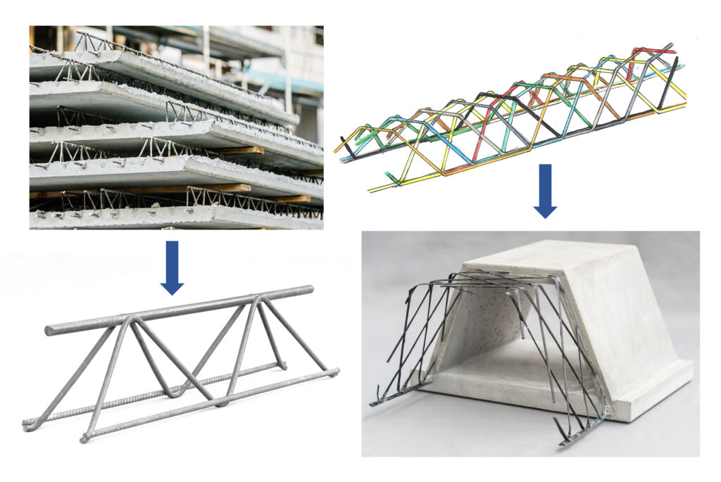Im Bauwesen sind Fertigteile eine etablierte Lösung, um einen schnellen Bauforschritt von Decken- und Wandelementen zu unterstützen. Jedoch stoßen konventionelle Elemente aus Stahlbeton aufgrund ihres massiven Aufbaus und der Korrosionsanfälligkeit des Bewehrungsstahls immer öfter an ihre Einsatzgrenzen. Daher sollen perspektivisch auch im Filigranfertigteilbau textile Bewehrungen für Gitterträger eingesetzt werden, die zusätzliche Hohlräume, beispielsweise zur Führung von Medien o. ä., ermöglichen.