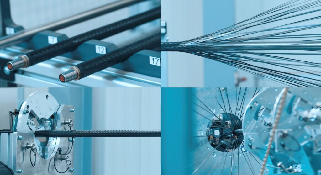Zum Herstellen der recycelbaren thermoplastischen Verbundbauteilen in großem Maßstab kombiniert die herone-Technologie (siehe Kasten) automatisierte Textiltechnik (Flechtverfahren) mit einem effizienten Pressprozess. Ressourcenschonend lassen sich so Hohlprofile aus faserverstärkten Kunststoffen mit veränderlichen Lagenaufbauten oder Querschnitten sowie Lasteinleitungselementen herstellen. Die kosteneffizienten Hohlprofile in Form von Streben, Wellen und Rohrleitungen finden Anwendung als Leichtbaulösungen zur Übertragung von Lasten, Bewegungen und Flüssigkeiten in Mobilität, Sport und Industrie. „Unser Ziel ist es, Lösungen zur Überwindung von Grenzen anzubieten, und so unseren Beitrag zur Bewältigung globaler gesellschaftlicher Herausforderungen zu leisten“, fasst Christian Garthaus die tiefe Motivation in Worte. „Mit der herone-Technologie können wir beispielsweise den Wandel hin zum emissionsfreien Flugverkehr prägend unterstützen.“