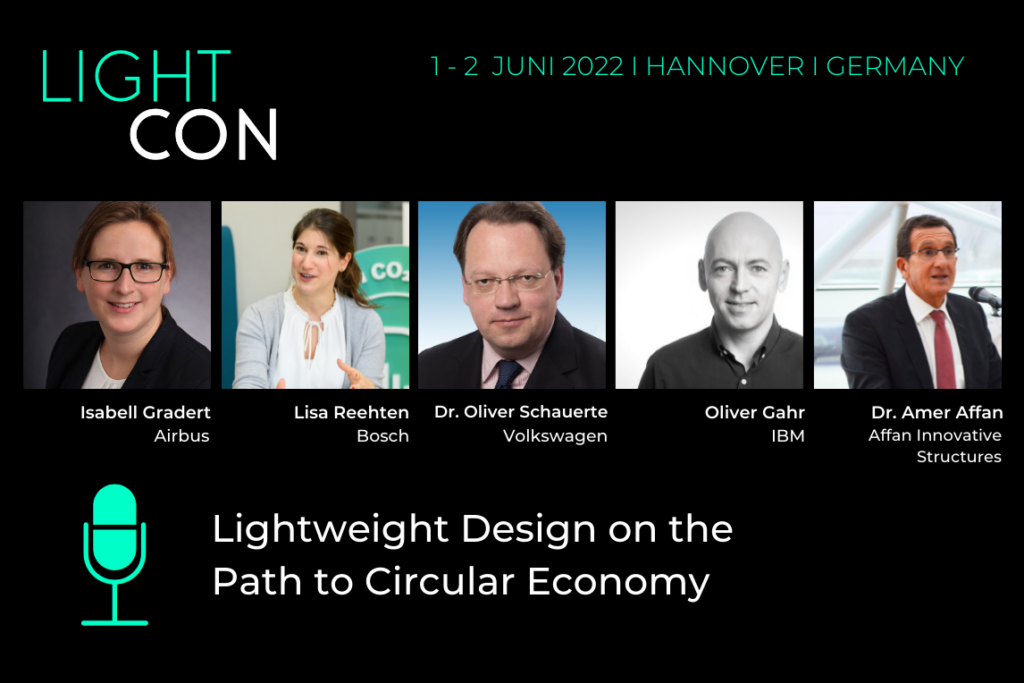 Hannover. Airbus, Bosch, IBM, VW und Affan Innovative Structures – die Premiere der LightCon geht mit Keynotes von fünf marktführenden Unternehmen an den Start. Am 1. und 2. Juni bietet die neue Kongressmesse rund um hybride und nachhaltige Leichtbaulösungen ein hochkarätig besetztes Konferenzprogramm. Das Motto lautet „Lightweight Design on the Path to Circular Economy“ und stellt die globalen Herausforderungen Ressourceneffizienz und Klimaschutz für eine nachhaltige Kreislaufwirtschaft sowie die Verringerung von CO2-Emissionen in den Fokus. Die Konferenzsprache ist Englisch.