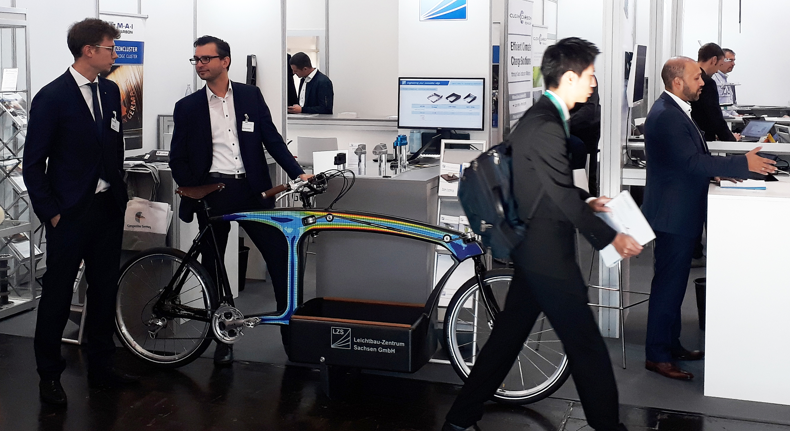 Prototyp eines CFK-Lastenrades, welches auf der Messe KarriereStart im Januar 2020 in Dresden gezeigt wurde. (© LZS GmbH)