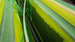 Im Lauf des Februars 2023 wurden die 36 Leichtbauträgerelementen dieser innovativen Schiebedachkonstruktion im Stadion installiert. Diese tragenden Elemente der mobilen Dachstruktur wurden vom spanischen Faserverbundspezialisten NANOTURES mit den Carbon- und Glasfasermaterialien von SAERTEX aus Saerbeck hergestellt. Durch das Ein- und Ausfahren der Dachkonstruktion inklusive der noch zu installierenden Membranen zwischen den Leichtbauträgern kann die komplette Arena vor Wind und Wetter geschützt werden kann.