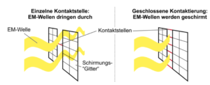 Schirmung von EM-Wellen nur mit geschlossener Kontaktierung