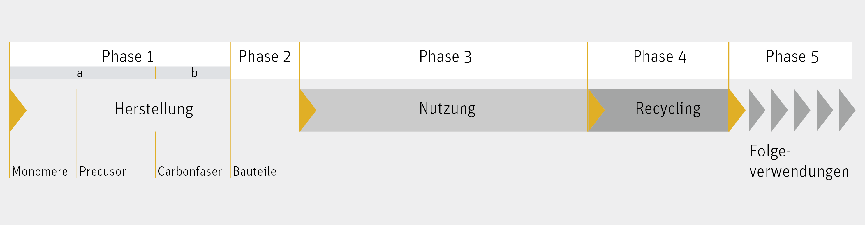 Abbildung: Exemplarische Darstellung der Lebenswegphasen von CFK-Bauteilen