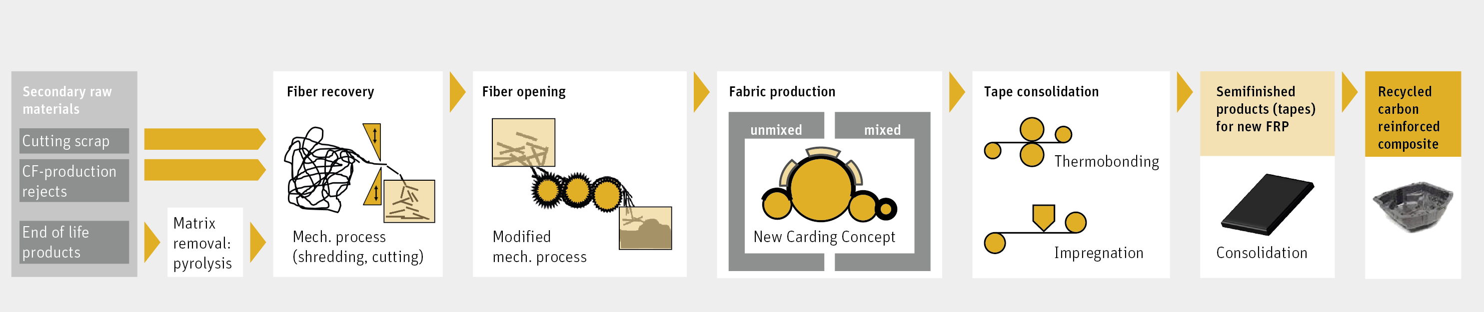 Abbildung: Schematische Darstellung des geplanten Recyclingprozesses für Carbonfasern