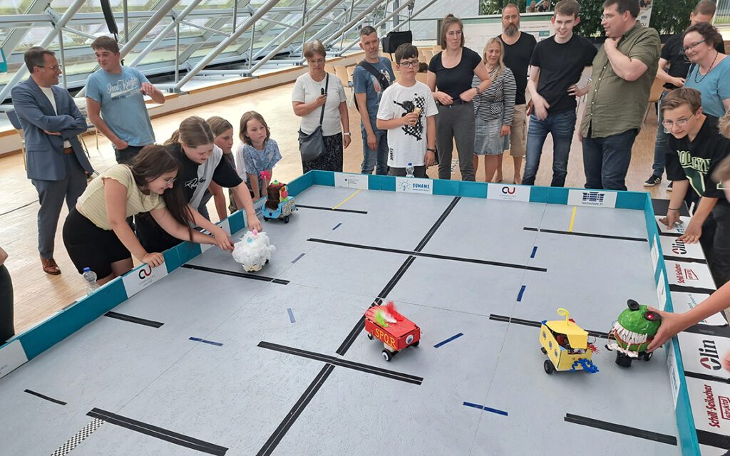 Am Dienstag, den 27. Juni 2023, gehörte die Solarhalle des CFK Nord in Stade den Jugendlichen und ihren Robotern: Das „Jugend macht MI(N)T!“-Cluster (JuMaMi) richtete wieder einen Technikwettbewerb aus. Sieger der gemeinsamen Aktion von Composites United, der hochschule 21 und dem Bildungsbüro des Landkreises war das Team SPQR – Senatus Populus Que Romanus.