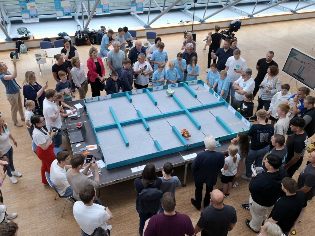 Schülerinnen und Schüler aus der Oberschule Steinkirchen, der Realschule ProMINT in Stade und der Geestlandschule Fredenbeck präsentierten stolz in den „Boxengassen“ ihre Werke. Denn mit viel Tüftelgeist hatten sie im Vorfeld Roboter gebaut, aufwendig programmiert und individuell gestaltet. Zum ersten Mal bestanden einige Crews ausschließlich aus Mädchen, die damit ein starkes Zeichen für vielfältige MINT-Begeisterung im Landkreis Stade setzen konnten.