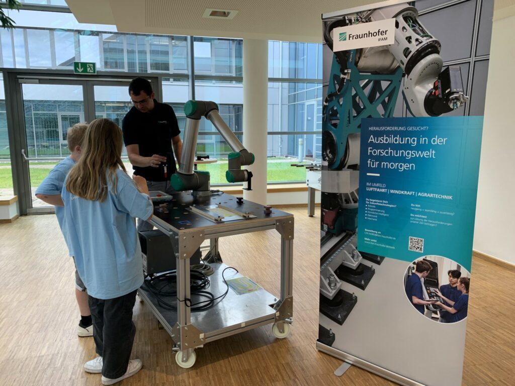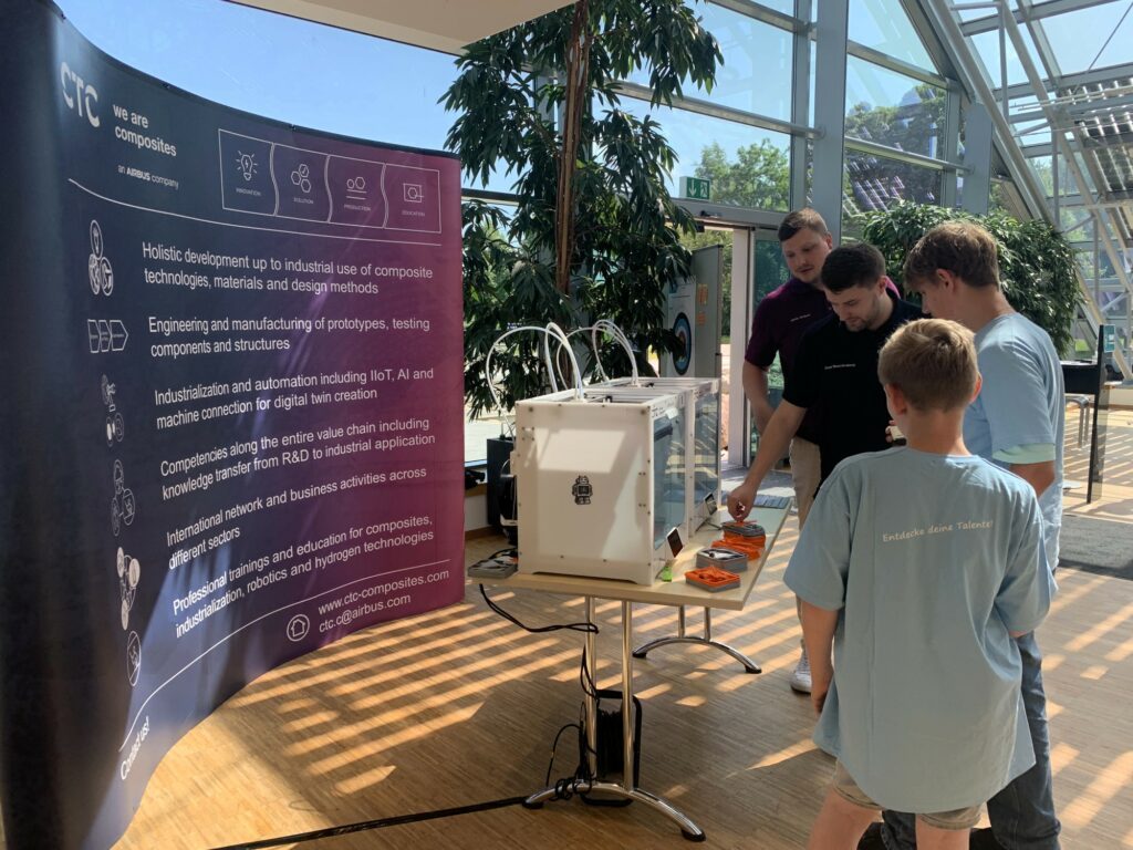 Dazu gab es ein abwechslungsreiches Rahmenprogramm in der Ottenbecker Solarhalle, das den Jugendlichen und Eltern gefiel: Wie im letzten Jahr spendierte die Volksbank Stade Cuxhaven leckeres Eis für alle. Das Fraunhofer-Institut für Fertigungstechnik und Angewandte Materialforschung IFAM, das Deutsche Zentrum für Luft- und Raumfahrt sowie das Composite Technology Center (CTC GmbH) präsentierten technische Innovationen.