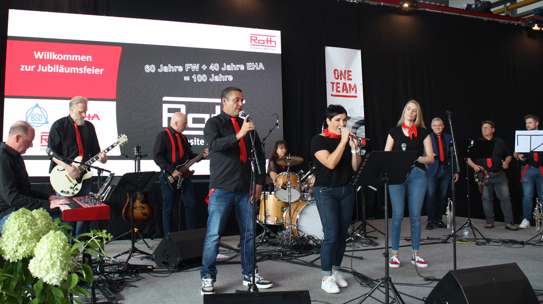 Für die musikalische Begleitung sorgte die Roth-Band, die sich aus Musikerinnen und Musikern aller verschiedener Roth-Unternehmen zusammensetzt. Sie hatten für das Jubiläum einen Streifzug aus bekannten Stücken der Rock- und Popgeschichte zusammengestellt.