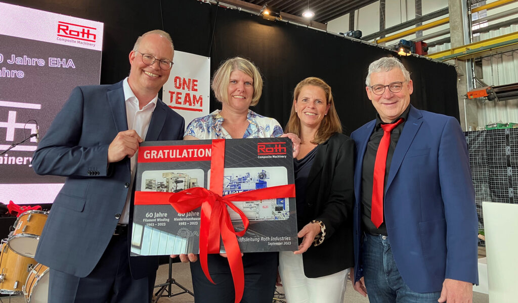 Mit einem Familienfest für die Beschäftigten aller drei Standorte hat die Firma Roth Composite Machinery ein Doppeljubiläum gefeiert: 60 Jahre Filament Winding-Expertise zurückgehend auf das Ursprungsunternehmen Bolenz + Schäfer sowie 40 Jahre Beschichtungs-Kompetenz des Ursprungsunternehmens EHA. „Wir blicken heute auf insgesamt 100 Jahre Neugier, Innovationskraft und Können“, betonte Geschäftsführer Dr. Andreas Reimann.