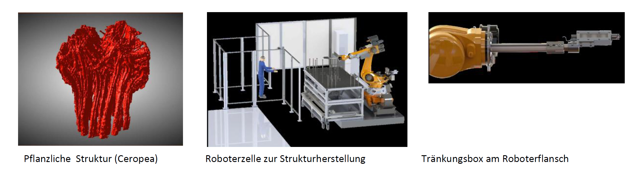 Das weiterentwickelte intelligente und modulare Fadenablagesystem bildet die Grundlage, um aktuelle Herausforderungen bei der Platzierung und Stabilisierung von räumlichen und stark verzweigten Bewehrungstopologien während des Herstellungsprozesses zu meistern. Die neuartige werkzeugunabhängige, geometrisch hochvariable, robotergestützte Faserlegetechnologie soll daher in der Lage sein, biologisch inspirierte, belastungsangepasste 3D-Textiltopologien mit Verstärkung in z-Richtung herzustellen.“
