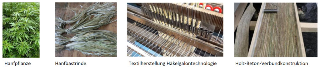 Frau Dipl.-Ing. Heike Metschies berichtete in ihrem Vortrag „Bastfasern aus nachwachsenden Ressourcen – Untersuchungen zur Anwendung von Bastfasern im Leichtbau“ über ihre Forschungsarbeiten am Sächsischen Textilforschungsinstitut Chemnitz. Sie stellte Bastfaserbewehrungen aus Nutzhanf, Flachs, Kenaf und Ramie sowie Tränkungsversuche dieser Fasern mit Epoxidharz vor. Speziell ging sie auf die Eigenschaften von Hanfbastfaserbewehrungen und auf textile Wertschöpfungsketten mit Naturfasern (z. B. die Verarbeitung von Hanfbastbändern mit der Häkelgalontechnologie oder die Pultrusion mit Bastfaser-KEMAFIL®-Bändern) ein. Abschließend stellte sie das Forschungsprojekt „Hanffaserverstärkte hochleistungsfähige und ressourceneffiziente Holz-Beton-Verbund-Decken“ vor. „Zielstellung des Projekts war es, durch die Verbindung nachhaltiger Bauprodukte und -weisen ein innovatives Deckensystem, auf Grundlage der Holz-Beton-Verbundbauweise (HBV-Bauweise), als ökonomische und ökologisch vorteilhafte Alternative zu den momentan vorherrschenden, energie- und ressourcenintensiven Deckenkonstruktionen aus Stahlbeton zu entwickeln. Das Deckensystem besteht aus Holzstegen, deren Zugzone durch hochleistungsfähige hanffaserbasierte Armierungstextilien verstärkt ist. Dadurch wird eine deutliche Reduktion des notwendigen Holzquerschnitt und eine anforderungsgerechtere sowie verantwortungsvollere Nutzung des Querschnitts für alle üblichen Spannweiten des Hoch- und Geschossbaus gelingen. … Hinsichtlich der mechanischen Eigenschaften, insbesondere Steifigkeit, werden Festigkeitswerte im Bereich konventioneller Glasfaser-Composites erreicht.“ Zitat Internetseite GRO COCE – Hanffaserkunststoffverstärkte, hochleistungsfähige und ressourceneffiziente Holz-Beton-Verbund-Decken- Sächsisches Textilforschungsinstitut e.V. (STFI)