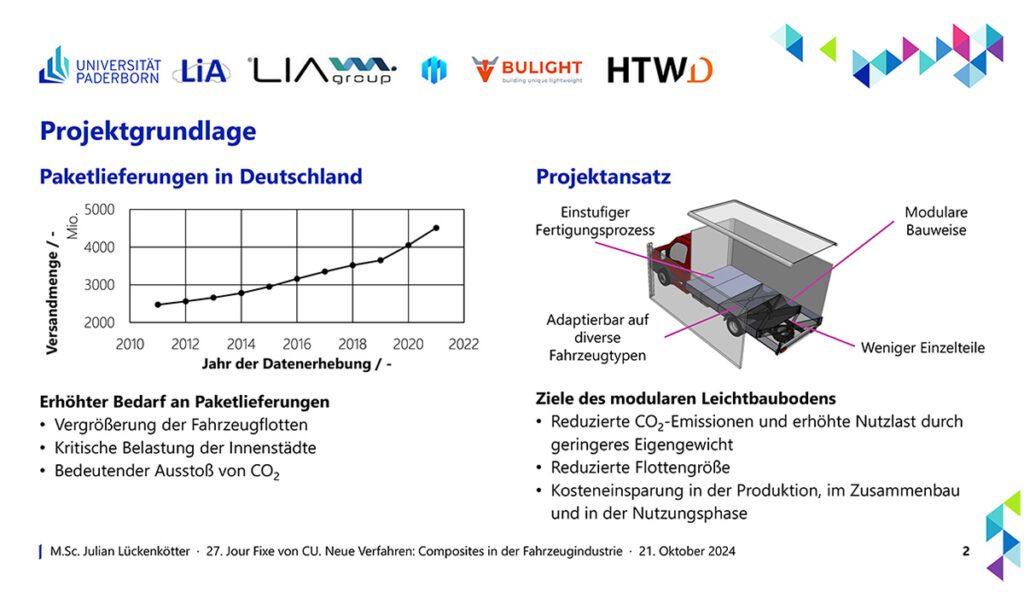 Referent: Julian Lückenkötter, Teamleiter Werkstoffe & Prozesse, Institut für Leichtbau mit Hybridsystemen (ILH) der Universität Paderborn