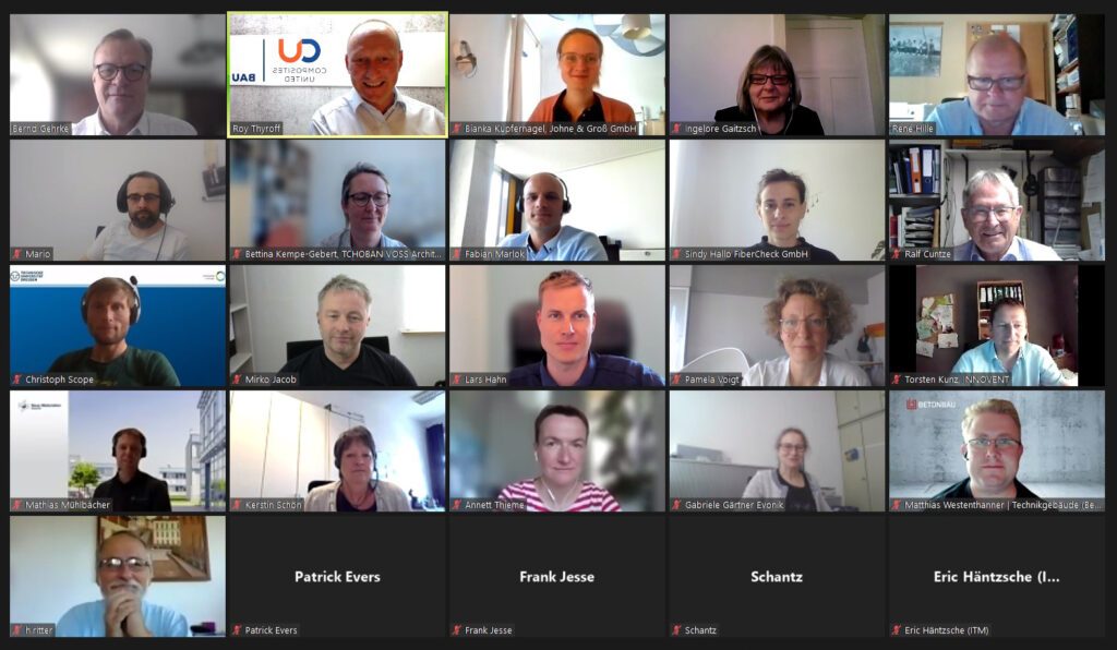 Die AG „Faserverbundwerkstoffe für Neubau und Sanierung“ des Fachnetzwerkes CU Bau des Composites United e. V. hatte am 15. Juni 2022 zu einer AG-Sitzung eingeladen und für die über 30 Teilnehmenden ein praxisorientiertes Vortragsprogramm unter dem Motto „Bauen und Sanieren mit Faserverbundwerkstoffen: Werkberichte mit Zukunftspotential“ vorbereitet. Die vorgestellten Werkberichte gaben einen Einblick in die Potentiale von Faserverbundwerkstoffen mit mineralischen bzw. mit polymeren Matrices für Bauanwendungen. Die Beiträge sollten der Standortbestimmung der Teilnehmenden dienen, Rückschlüsse auf den Stand der Technik erlauben, vor allem aber Zukunftschancen und Herausforderungen für Unternehmen und Forschungseinrichtungen aufzeigen.
