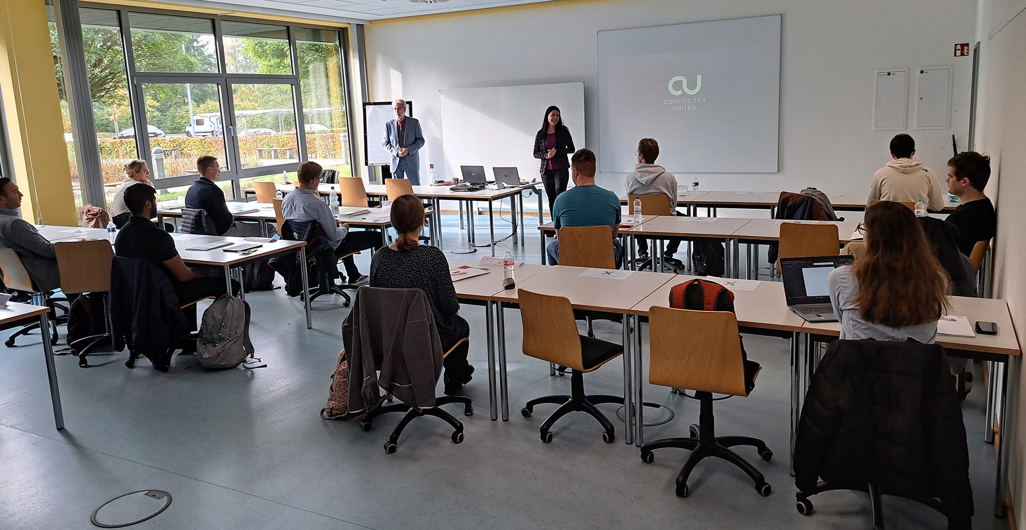 Composites United e.V. (CU) bietet auch in diesem Jahr wieder ausgewählten Studierenden die Möglichkeit einer studienbegleitenden fachlichen Ausbildung auf dem Gebiet der Faserverbundwerkstoffe. Nach zwei Jahren mit reinen Online-Formaten sind im Rahmen des Programms 2022/23 nun wieder Präsenzveranstaltungen möglich.