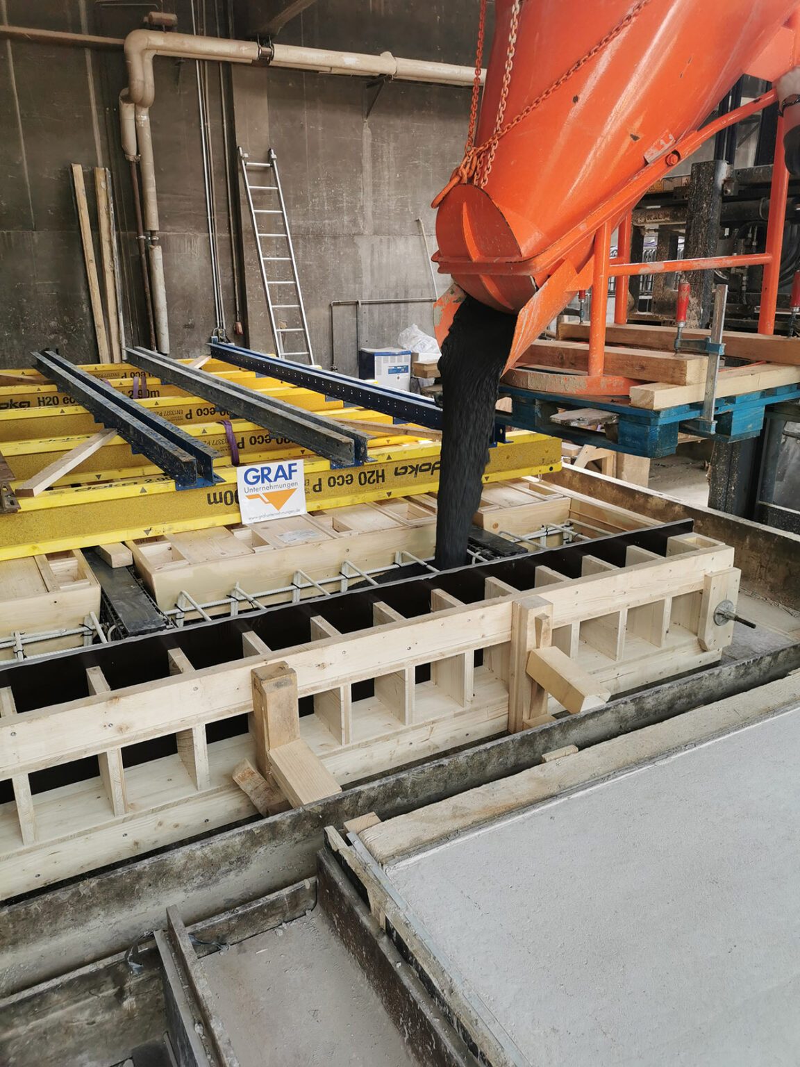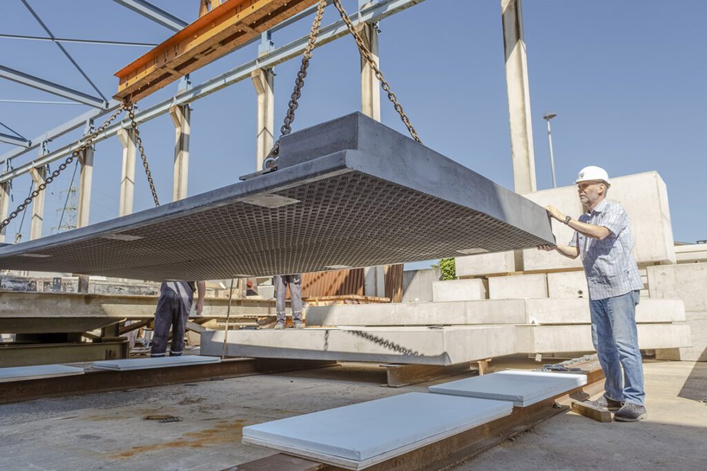 oben: Fertiges Bauteil im Betonwerk Graf
