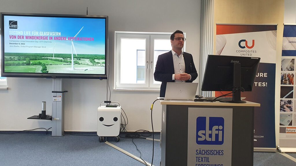 Highlights aus der Industrie waren u. a. „Carbon Fiber Recycling – Zu Ende gedacht“ von Tim Rademacker, Mitsubishi Chemical, sowie „Second Life für Glasfasern – Von der Windenergie in andere Applikationen“ von Jens Boelke, Owens Corning. Besonders eindrucksvoll zeigte sich die ganzheitliche Kreislauf-Strategie des Mittelständlers NOVO-TECH GmbH & Co. KG aus Sachsen-Anhalt im Beitrag „Stoffliche Verwertung von Rotorblättern mit dauerhaft CO2-senkendem Effekt“ von Susann Krohn; NOVO-TECH verwendet für seine Produkte schon seit vielen Jahren ausschließlich „Abfall“ aus Windenergieanlagen und anderen Industrien.