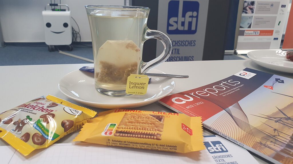 Das Programm war gespickt mit Highlights aus Industrie und Forschung, was einen sehr kurzweiligen Tag in Chemnitz mit intensivem Austausch aller nach sich zog. So stellte etwa Vanessa Overhage, Institut für Textiltechnik der RWTH Aachen University, vor wie rCF-Fasern im Bauwesen erneut als Textilbewehrung eingesetzt werden können. Ebenfalls waren der Gastgeber STFI, die TU Dresden, die HTWK Leipzig und das ITA Augsburg vertreten, letztere stellten ihr kürzlich eröffnetes „Recycling Atelier“ vor.